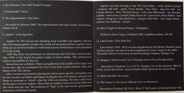| 6-String Bass, Other [Lead Lakota] Mary Mullen (2) | Bass Victor Balogh | Cello Michael Intriere | Clarinet Eric Hoffman (7), Jorge Martin | Guitar Jeff Tady | Oboe Celeste Moreno | Saw [Saw!] Rick Potts | Saxophone Eric Gill, Jean Habermann | Snare Brandon LaBelle, Cambell Dallas Emory III | Trumpet Max Markowitz, Richard Linnett | Violin Ester Ballint | |||