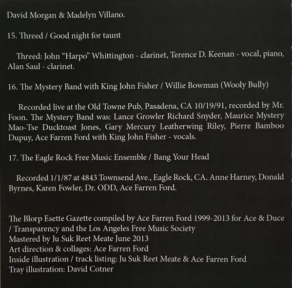 | Performer Ace Farren Ford, Gary Mercury Leatherwing Riley, Maurice Mystery Jones, Pierre Bamboo Dupuy, Richard Snyder | Recorded By Mr. Foon | Vocals King John Fisher | |||