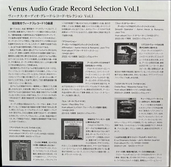 | Titel | Venus Audio Grade Record Selection Vol. 1 - By Masamitsu Fukuda LTD |