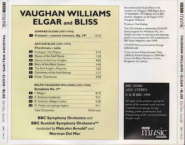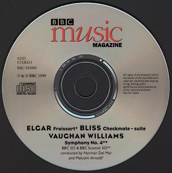 | Artiest | Sir Edward Elgar | BBC Symphony Orchestra | Ralph Vaughan Williams | Malcolm Arnold | BBC Scottish Symphony Orchestra | Arthur Bliss | Norman Del Mar |