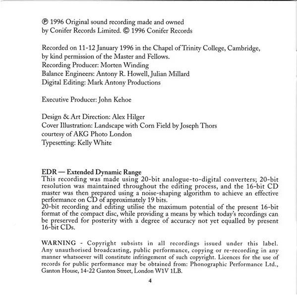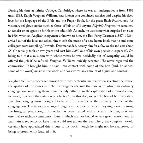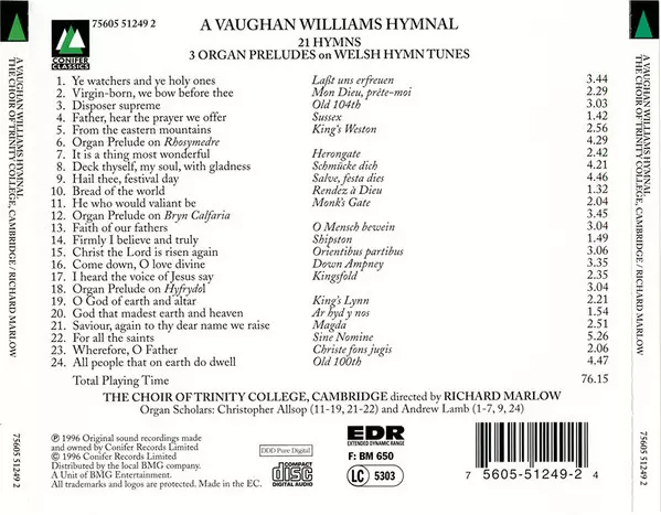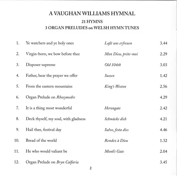 Ralph Vaughan Williams: A Vaughan Williams Hymnal versie op CD in standaard editie. Deze specifieke uitgave werd uitgebracht in Verenigd Koninkrijk bij uitgeverij Conifer Classics op 7. februari 2011. Album valt binnen het genre Klassieke muziek en Choral.