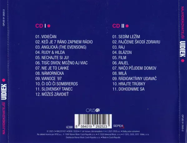 Vidiek: Najvidiekovatejší versie op 2CD in remastered editie. Deze specifieke uitgave werd uitgebracht in Tsjechië en Slowakije bij uitgeverij Opus op 15. oktober 2021. Album valt binnen het genre Rock, Pop, Pop Rock en Tsjecho-Slowaakse klassiekers.