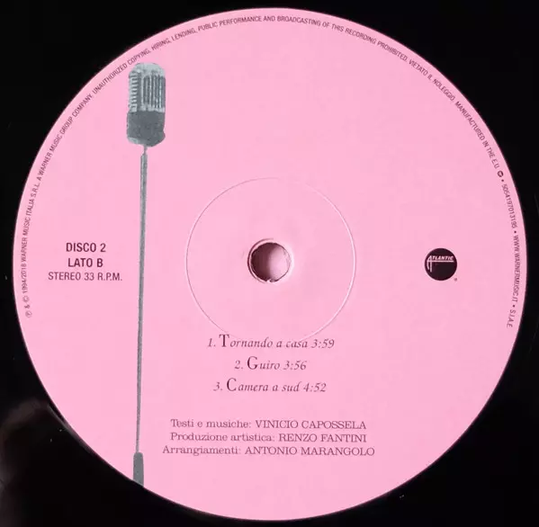 Vinicio Capossela: Camera A Sud versie op vinyl 2LP in remastered editie. Deze specifieke uitgave werd uitgebracht in Europa bij uitgeverij Atlantic op 2. november 2018. Album valt binnen het genre Pop, Folk, World, & Country en Folk. 180g Remastered Gatefold Vinyl.
