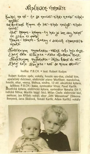 Bass Guitar P.B.Ch. | Drums, Synthesizer Pavel Karlík | Guitar [Electric] Robert Kodym | Lyrics By Josef Vondrášek | Music By Jaroslav Zajpt, P.B.Ch., Pavel Zvolenský, Robert Kodym