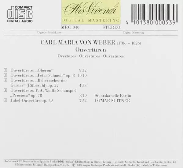 | Artiest | Carl Maria von Weber | Staatskapelle Berlin | Otmar Suitner |