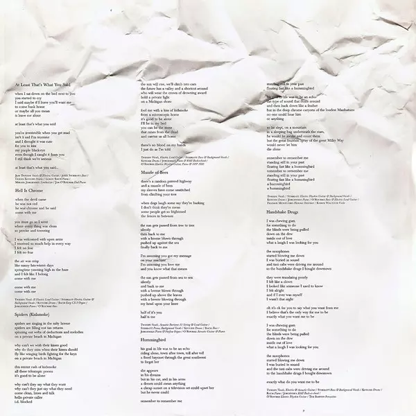 Bass, Backing Vocals [Background Vocals] John Stirratt | Drums Glenn Kotche | Electric Harpsichord [RMI Rock-si-chord] Mikael Jorgensen | Percussion Tim Barnes | Piano LeRoy Bach | Rhythm Guitar [Electric Rhythm Guitar] Jim O'Rourke | Vocals, Electric Guitar, Acoustic Guitar Jeff Tweedy | Written-By Jeff Tweedy