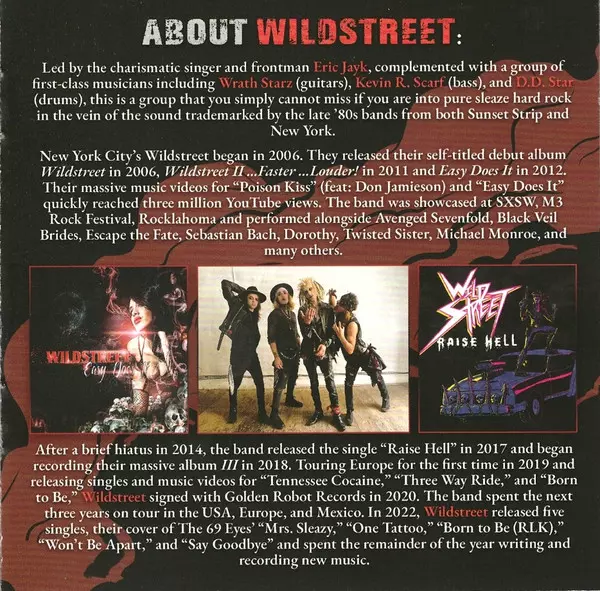Hair / Glam Metal band from New York . Wildstreet began in 2006. Over the course of the next 7 years, the band released two EPs & two music videos which have received well-over 3,000,000 youtube views. Wildstreet’s songs have appeared on National/International TV networks including...