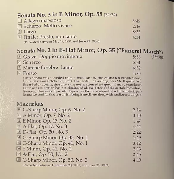 | Artiest | Frédéric Chopin | William Kapell |
