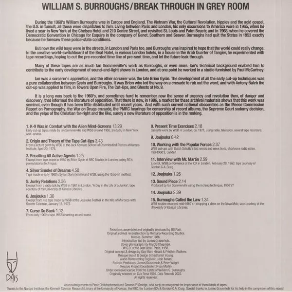 | A2 | William S. Burroughs: Origin And Theory Of The Tape Cut-Ups | 3:43 min | |