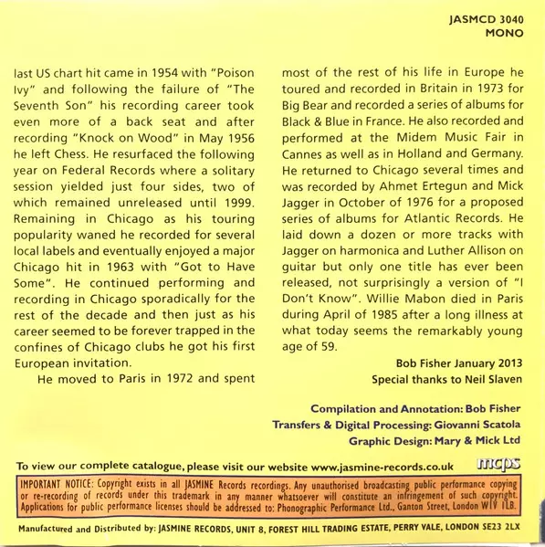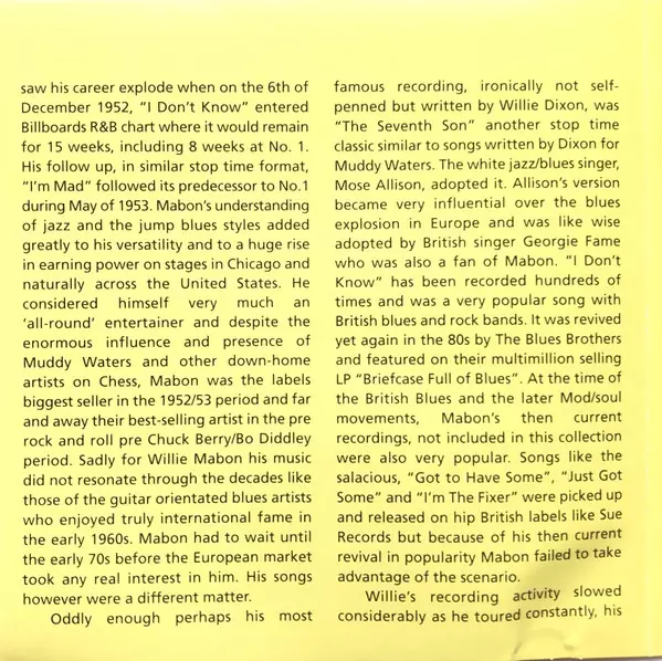 | Titel | Willie's Blues: The Greatest Hits (1952-1957) |