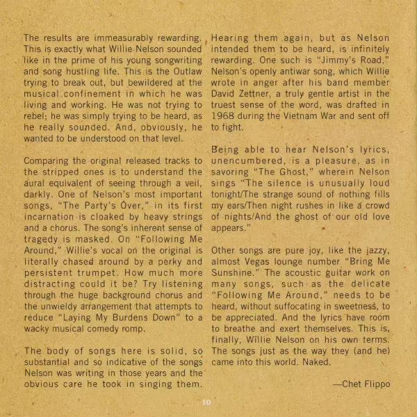 Bass Bob Moore | Drums Buddy Harman | Guitar Charlie McCoy, Jerry Reed, Wayne Moss | Piano David Briggs (2) | Producer Chet Atkins, Danny Davis (4) | Vocals Willie Nelson | Written-By Willie Nelson