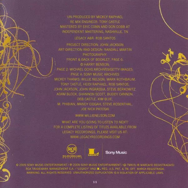 Bass Bob Moore | Drums Buddy Harman | Guitar Jerry Reed, Wayne Moss | Guitar, Piano, Vibraphone [Vibes] Charlie McCoy | Piano David Briggs (2) | Producer Chet Atkins, Danny Davis (4) | Vocals Willie Nelson | Written-By Willie Nelson