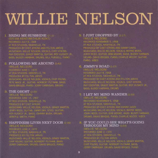 Bass Norbert Putnam | Drums Jerry Carrigan | Guitar Chip Young, Pete Wade | Organ Glen Spreen | Piano David Briggs (2) | Producer Felton Jarvis | Vocals Willie Nelson | Written-By Willie Nelson
