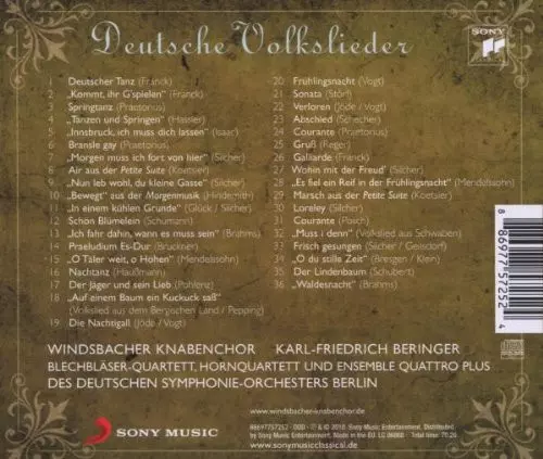 Windsbacher Knabenchor: Deutsche Volkslieder versie op CD in standaard editie. Deze specifieke uitgave werd uitgebracht bij uitgeverij Sony Classical op 15. oktober 2010. Album valt binnen het genre Rock, Pop, Klassieke muziek, Stage & Screen, Folk, World, & Country, Pop Rock en Soundtrack.
