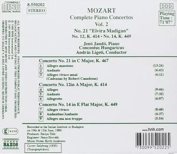 | Artiest | Wolfgang Amadeus Mozart | Jenö Jandó | András Ligeti | Concentus Hungaricus |
