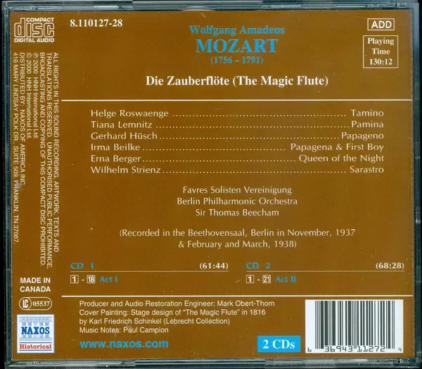 Artiest | Wolfgang Amadeus Mozart | Berliner Philharmoniker | Sir Thomas Beecham | Helge Roswaenge | Tiana Lemnitz | Gerhard Hüsch | Wilhelm Strienz |