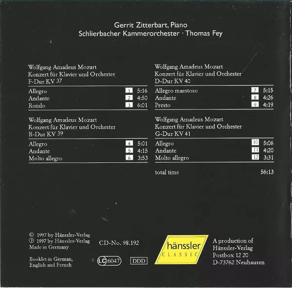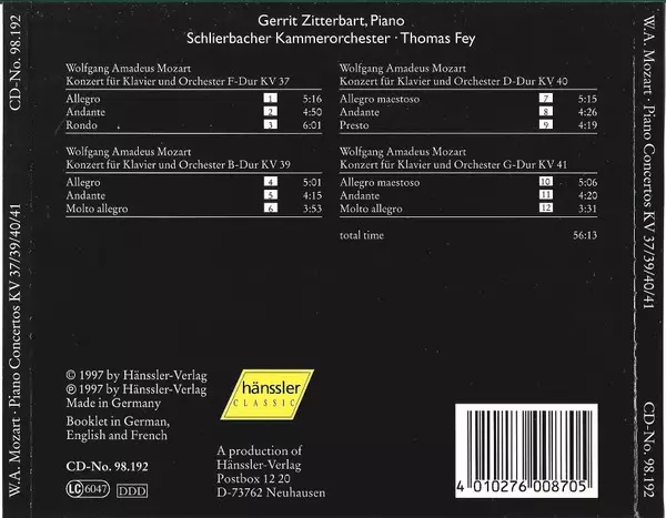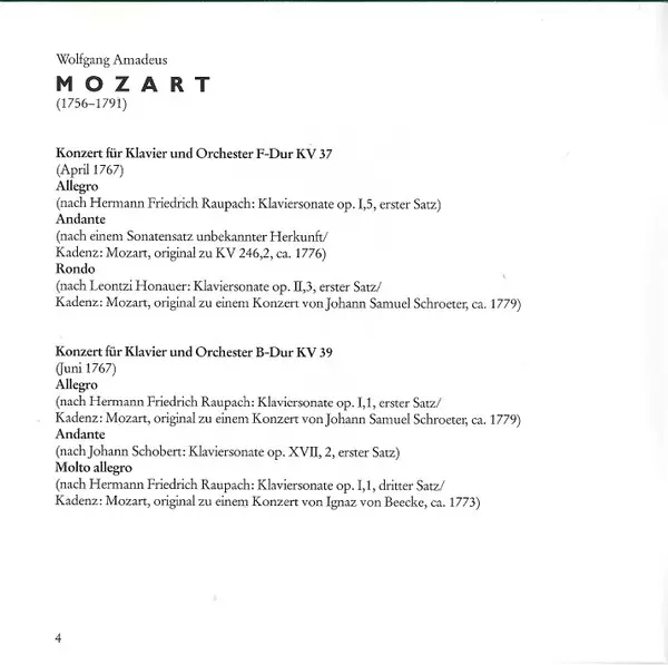 | Titel | Piano Concertos (KV 37/39/40/41) |