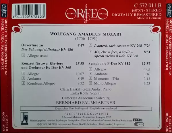 Konzert Für Zwei Klaviere KV 365 · Konzertarien KV 208 · KV 368 · Symphonie KV 112 - CD