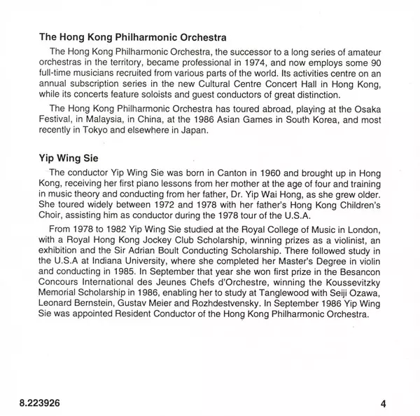 | Artiest | Hong Kong Philharmonic Orchestra | Wong On Yuen | Yip Wing Sie |
