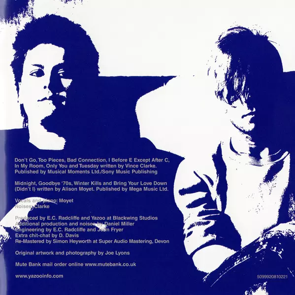 Alison Moyet a Vince Clarke alias Yazoo jsou i téměř 40 let po svém vzniku jedním z nejúspěšnějších britských popových duet. Za svou krátkou existenci vydali dvě klasická alba, "Upstairs At Eric's" a "You And Me Both". Hity jako "Only You", "Don't Go", "Situation" a "Nobody's Diary" jsou dodnes povinnou součástí každé osmdesátkové party a oblíbe...