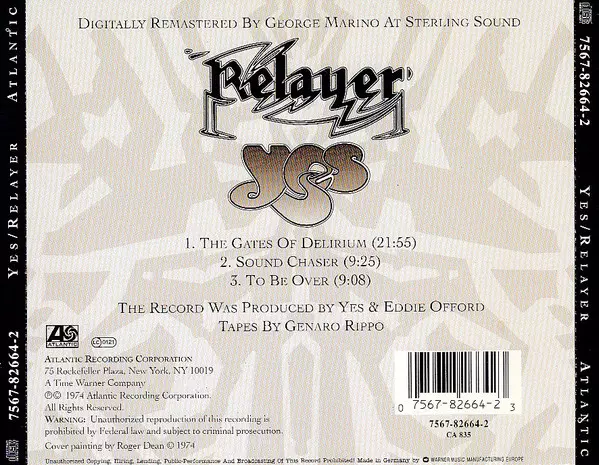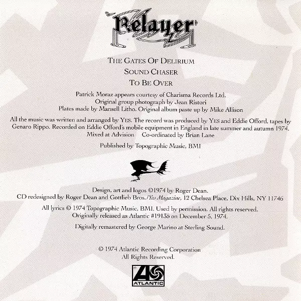 Yes' Relayer album, released in 1974, is full of energy and creativity. The album is a blend of hard rock and progressive rock and is a great showcase of the band's talent and musicianship. The album contains a number of great tracks including "The Gates of Delirium", "Sound Chaser" and "To Be Over". Relayer is an album that is sure to please fa...