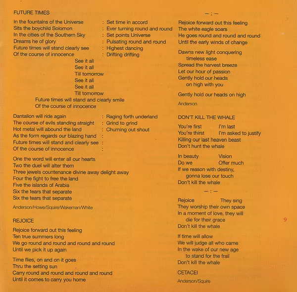 Bass [Rickenbacker], Piano, Vocals Chris Squire | Composed By Chris Squire, Jon Anderson | Drums Alan White | Guitar [Gibson 'the Les Paul'] Steve Howe | Synthesizer [Birotron & Polymoog] Rick Wakeman | Vocals Jon Anderson