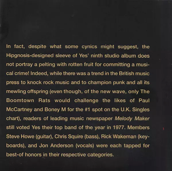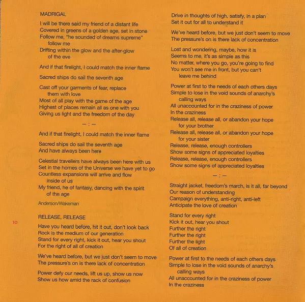 Bass [Harmonised Rickenbacker], Effects [Bass Pedals], Vocals Chris Squire | Composed By Jon Anderson, Rick Wakeman, Steve Howe | Drums, Synthesizer [Drum Synthesizer], Gong [Gongs] Alan White | Guitar [Alvarez 10-string], Vocals Jon Anderson | Guitar [Gibson 'the Les Paul'], Vocals Steve Howe | Synthesizer [Polymoog, Birotron], Piano Rick Wakeman