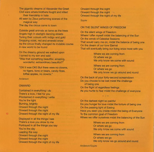 Bass [Rickenbacker], Vocals Chris Squire | Composed By Jon Anderson | Drums, Crotales Alan White | Mandolin [Gibson Electric & Acoustic], Vocals Steve Howe | Synthesizer [Polymoog & Birotron] Rick Wakeman | Vocals Jon Anderson | Voice Damion Anderson