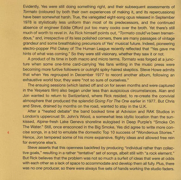 Yes: Tormato versie op CD in remastered editie. Deze specifieke uitgave werd uitgebracht in Europa bij uitgeverij Elektra in samenwerking met Rhino Records (2) en Warner Strategic Marketing op 17. mei 2019.