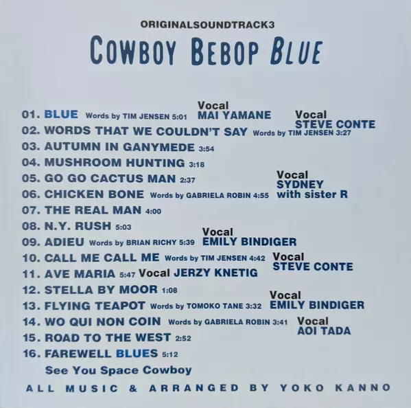 | Titel | Cowboy Bebop: Blue = カウボーイビバップ オリジナル サウンドトラック3 Blue |