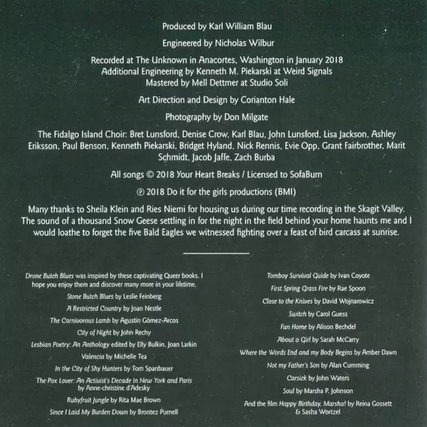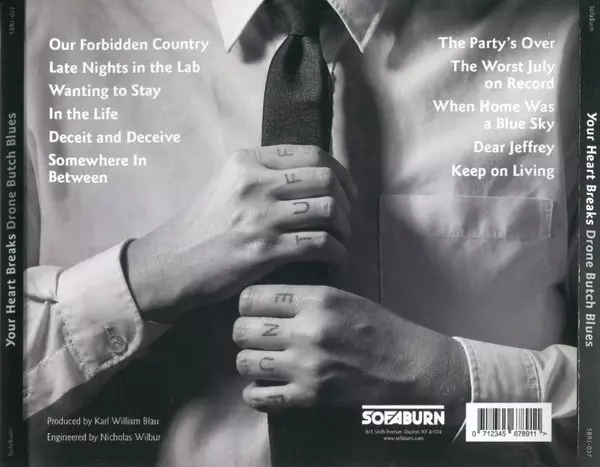 Your Heart Breaks: Drone Butch Blues versie op CD in standaard editie. Deze specifieke uitgave werd uitgebracht in VS bij uitgeverij Sofaburn Records op 12. april 2019. Album valt binnen het genre Rock, Akoestische muziek, Folk en Drone.