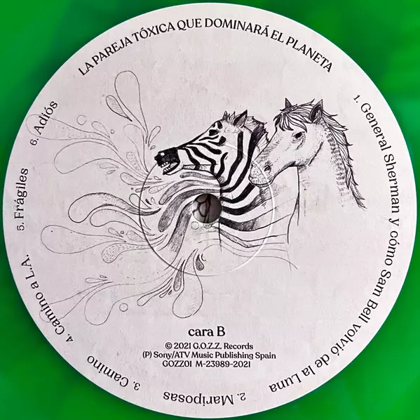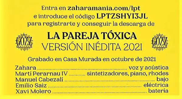 Zahara: La Pareja Tóxica CLR versie op vinyl LP in gekleurde editie. Deze specifieke uitgave werd uitgebracht in Spanje bij uitgeverij G.O.Z.Z. Records in samenwerking met Altafonte op 17. december 2021. Album valt binnen het genre Rock, Pop, Ballade, Alternative rock en Akoestische muziek.