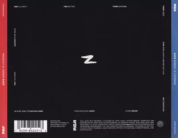ZAYN The album Nobody Is Listening, released in 2021, is a masterpiece. The album contains 12 tracks, all of which are amazing. Standout tracks include "No Candle No Light" with Nicki Minaj, "Fool for You" with Selena Gomez and "Too Much" with Timbaland. The album is a must listen for any music fan ZAYN.