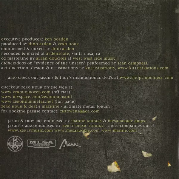Zero Hour was a progressive metal band formed by twin brothers Jasun Tipton and Troy Tipton in Pleasanton, California in 1993. The band is signed by Sensory Label. New vocalist Chris Salinas joined the band for their 2006 album Specs of Pictures Burnt Beyond, replacing Fred Marshal...