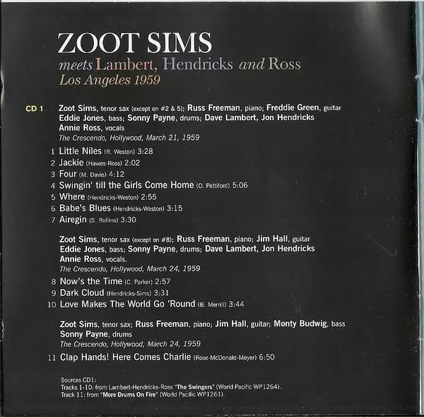 | Artiest | Zoot Sims | Lambert, Hendricks & Ross |